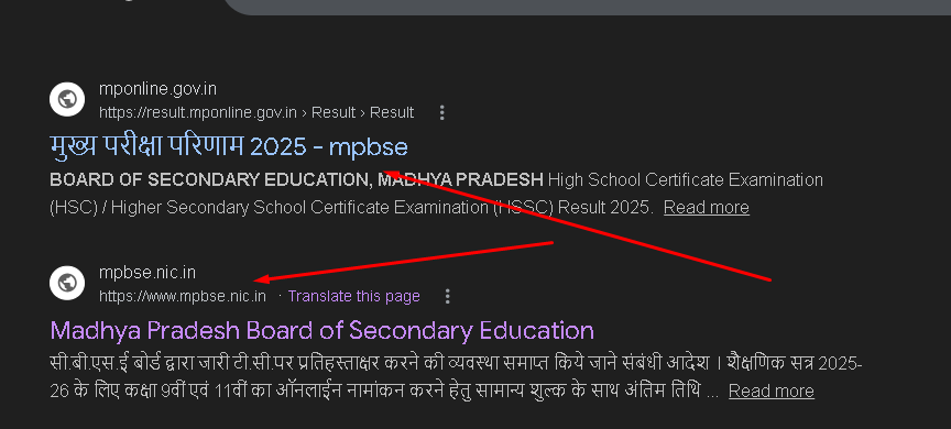 Madhya Pradesh Board 12th Result Check लिखकर सर्च करने के बाद आपके सामने मध्य प्रदेश राज्य की ऑफीशियली वेबसाइट रिजल्ट में दिखेंगे यहां पर आप दोनों में से कोई भी वेबसाइट के लिए करके ओपन कर सकते हैं।