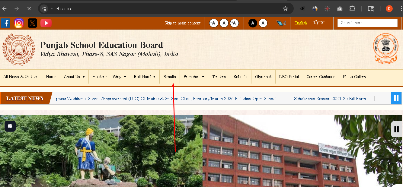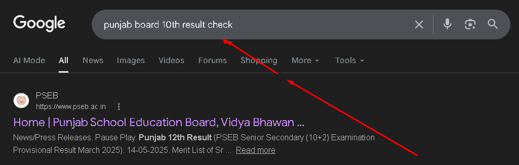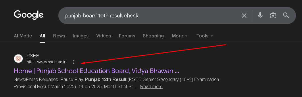 सर्च करने पर पंजाब बोर्ड की ऑफीशियली वेबसाइट सबसे ऊपर सर्च रिजल्ट में दिखेगी यहां वेबसाइट को क्लिक करके ओपन कर दें।