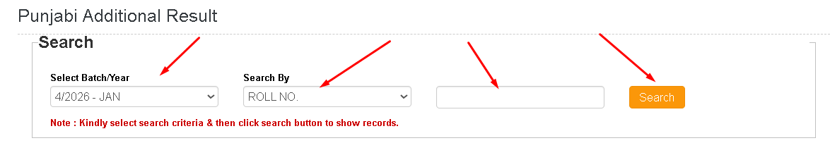 Search By ऑप्शन पर क्लिक करके आप यहां पर रोल नंबर ऑप्शन select कर दें