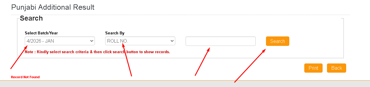 उसके बाद रोल नंबर दर्ज करें तथा Search पर क्लिक करें,